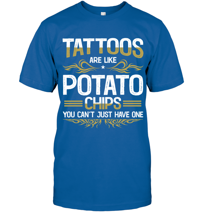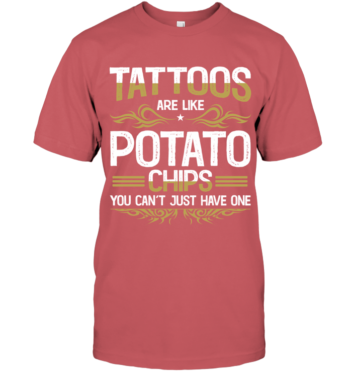 Overall, this shirt is perfect not only for those who live the tattoo lifestyle but also for anyone who’s got a soft spot for potato chips. It’s a fun way to show your love for both—the addiction to ink and that crispy, salty snack you just can’t resist.